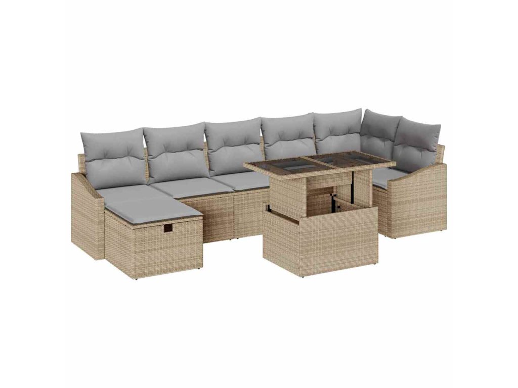 Sada zahradních pohovek s polštářem 8 pcs Béžová Poly ratan 3359847