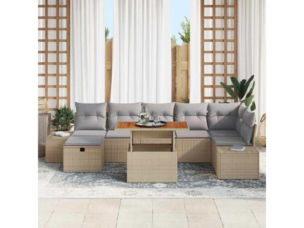 Sada zahradních pohovek s polštářem 8 pcs Béžová Poly ratan 3360060