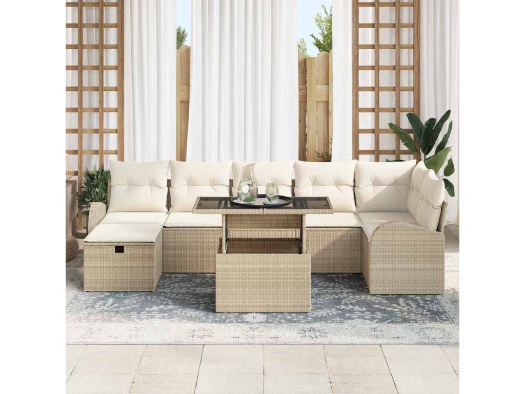 Sada zahradních pohovek s polštářem 8 pcs Béžová Poly ratan 3361100