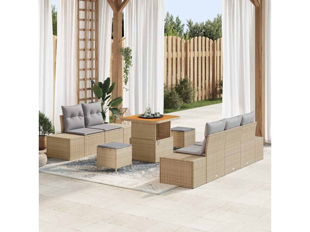 Sada zahradních pohovek s polštářem 8 pcs Béžová Poly ratan 3362727