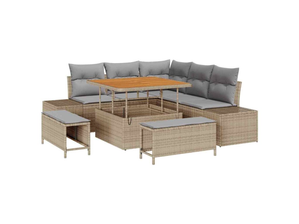 Sada zahradních pohovek s polštářem 8 pcs Béžová Poly ratan 3362777
