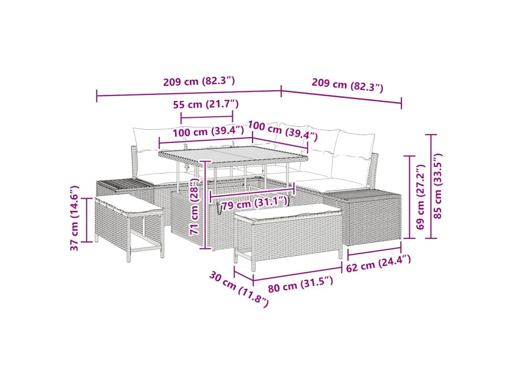 - Materiál: Vyrobeno z poly ratanového povrchu, který dobře vypadá a odolává opotřebení. Robustní ocelový rám drží vše pohromadě, zatímco pohodlné polyesterové polštáře zvládnou venkovní podmínky.