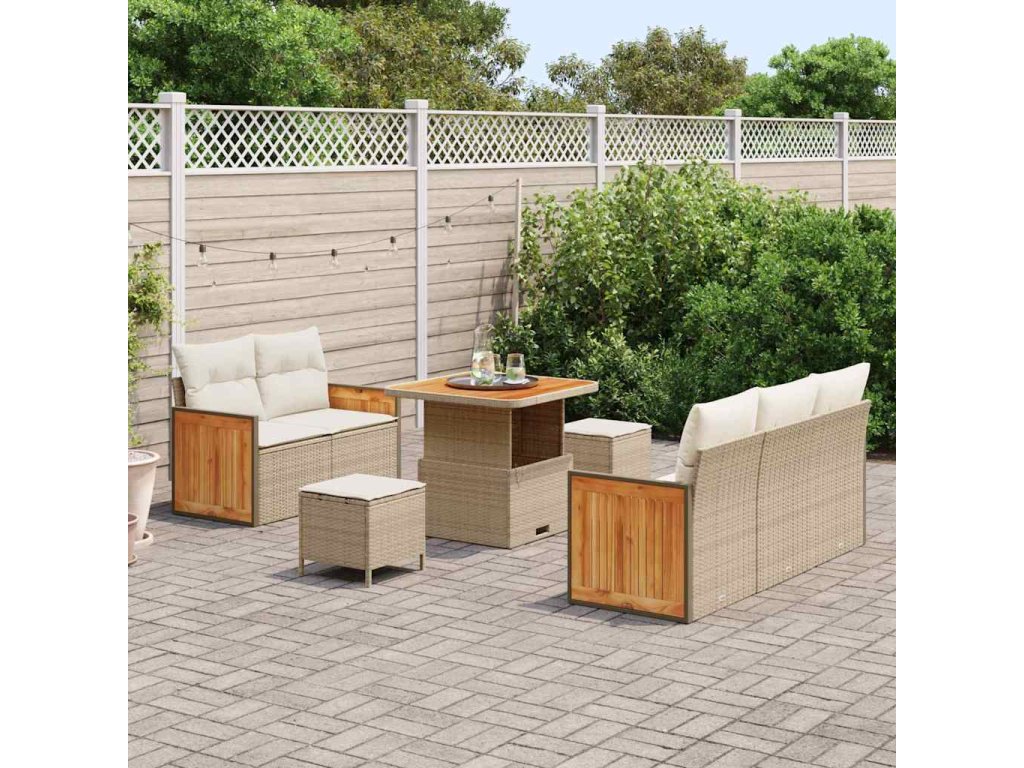 Sada zahradních pohovek s polštářem 8 pcs Béžová Poly ratan 3365196