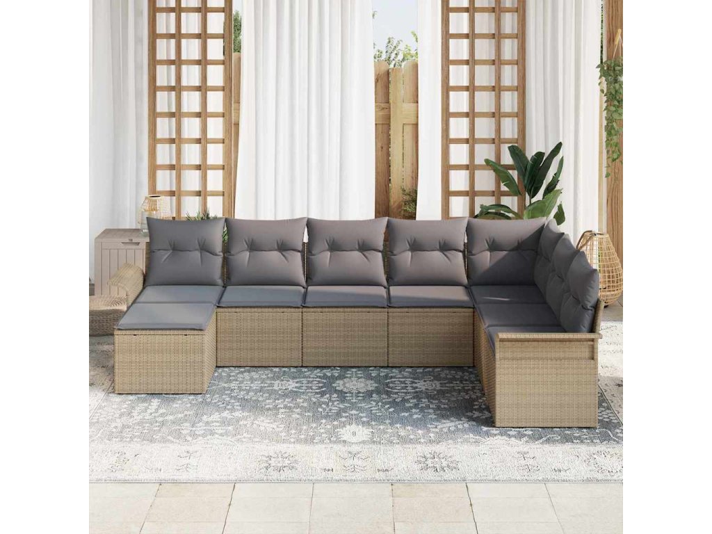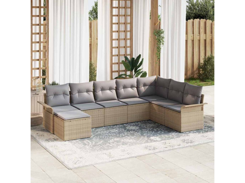 Sada zahradních pohovek s polštářem 8 pcs Béžová polyratan 3345480