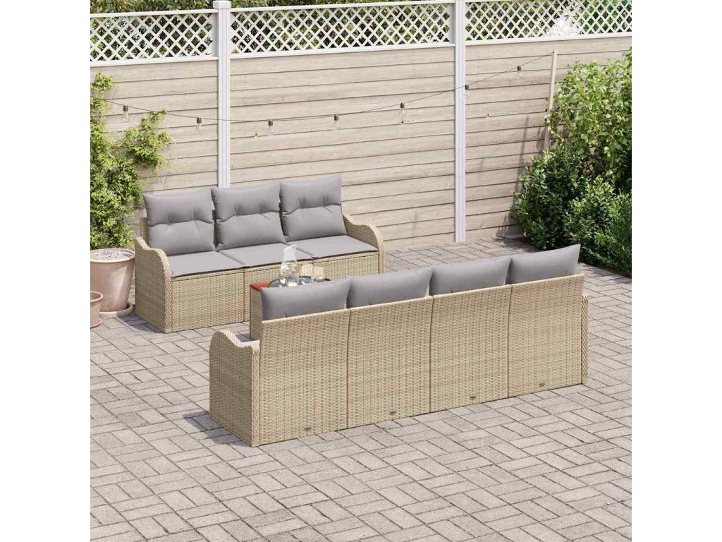 Sada zahradních pohovek s polštářem 8 pcs Béžová polyratan 3347413