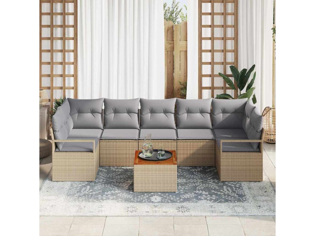 Sada zahradních pohovek s polštářem 8 pcs Béžová polyratan 3347672