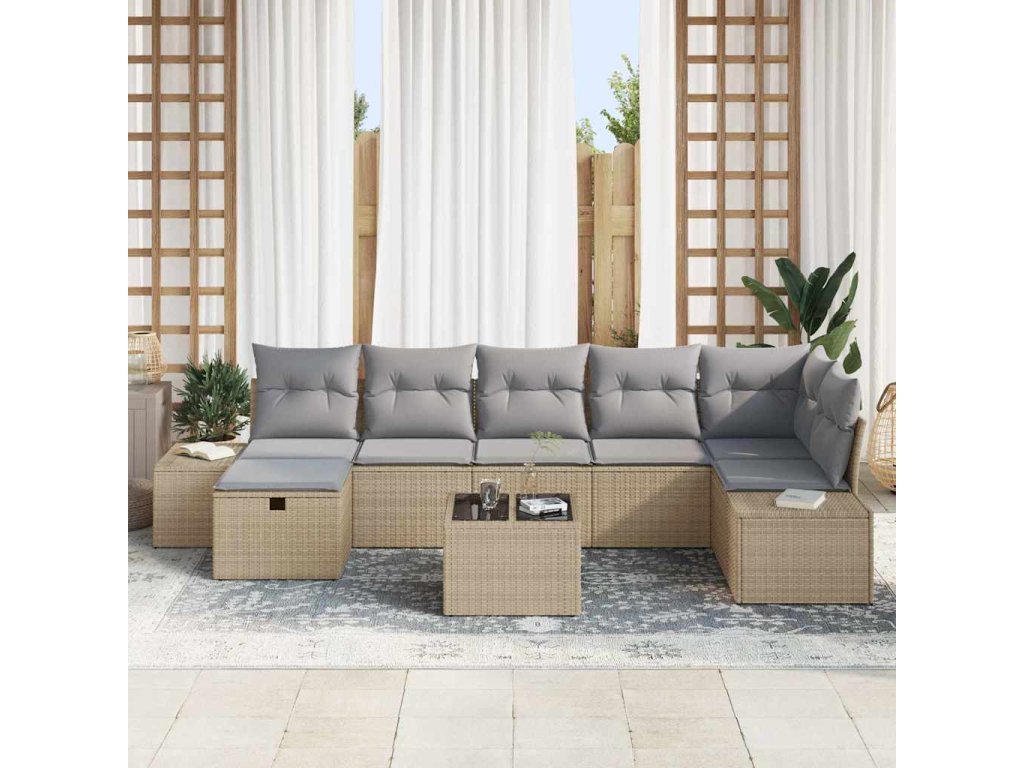 Sada zahradních pohovek s polštářem 8 pcs Béžová polyratan 3359409