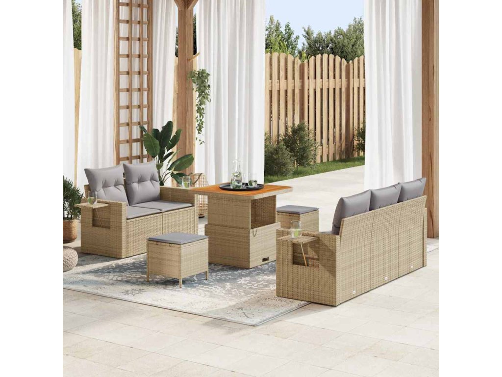 Sada zahradních pohovek s polštářem 8 pcs Béžová polyratan 3361687