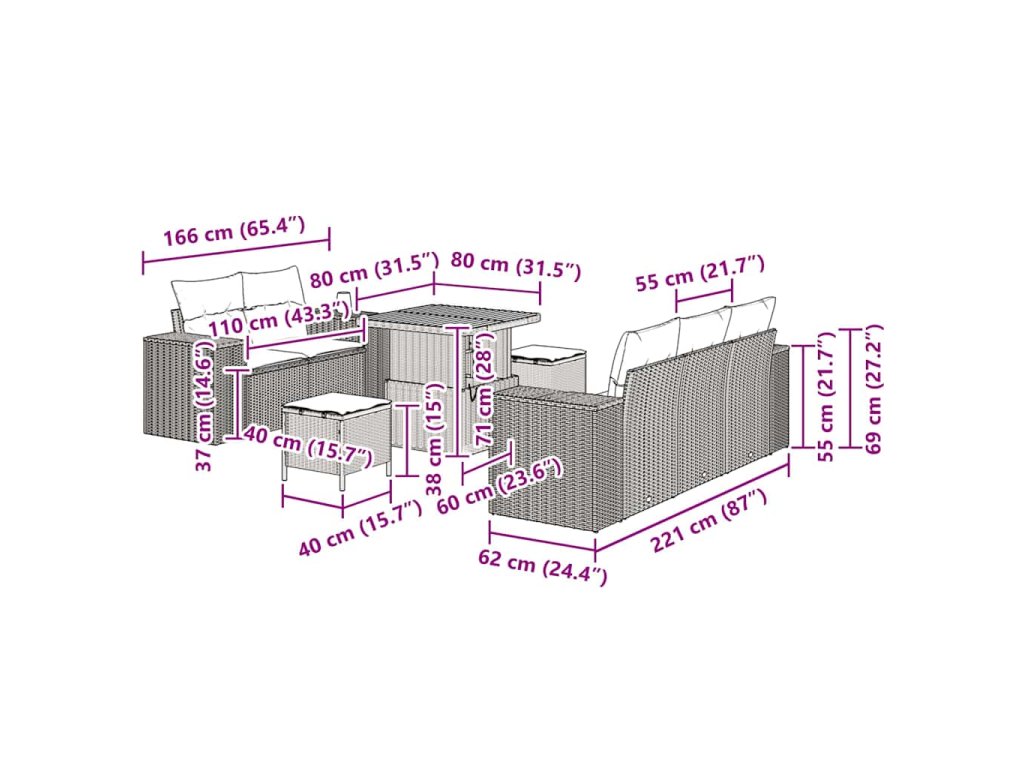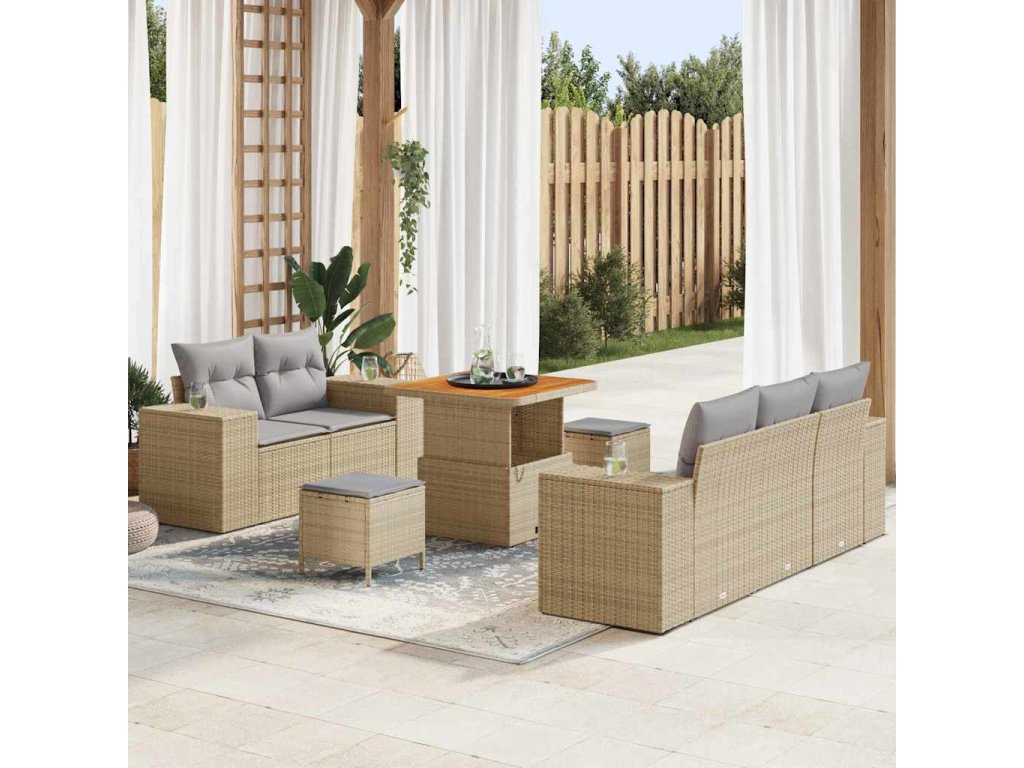 Sada zahradních pohovek s polštářem 8 pcs Béžová polyratan 3361947