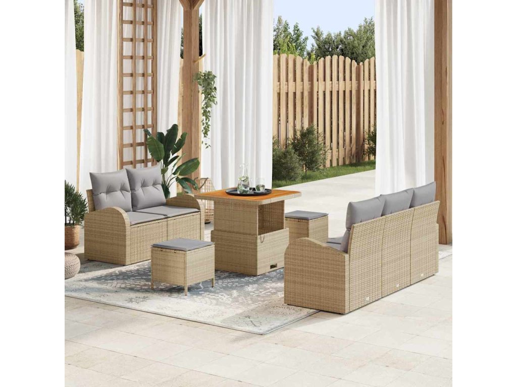 Sada zahradních pohovek s polštářem 8 pcs Béžová polyratan 3362337