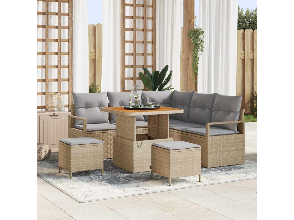 Sada zahradních pohovek s polštářem 8 pcs Béžová polyratan 3362522
