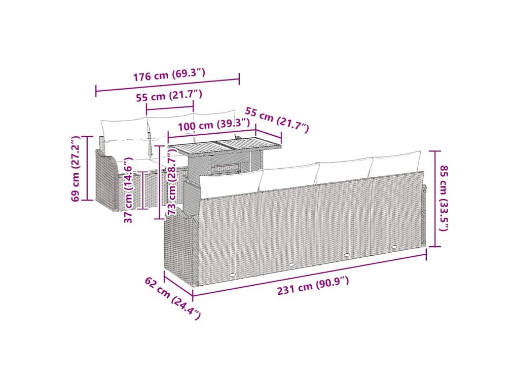 - Obsah balení: Získáš čtyři pohovky s opěrkami, každá s úložným prostorem, a tři středové sedačky, které také ukrývají úložný prostor, k tomu robustní zahradní stolek. Úložný prostor v pohovkách je skvělý na uschování polštářů nebo dek, aby tvůj prostor vypadal upraveně. Zahradní stolek nabízí praktické místo pro jídlo nebo zábavu.