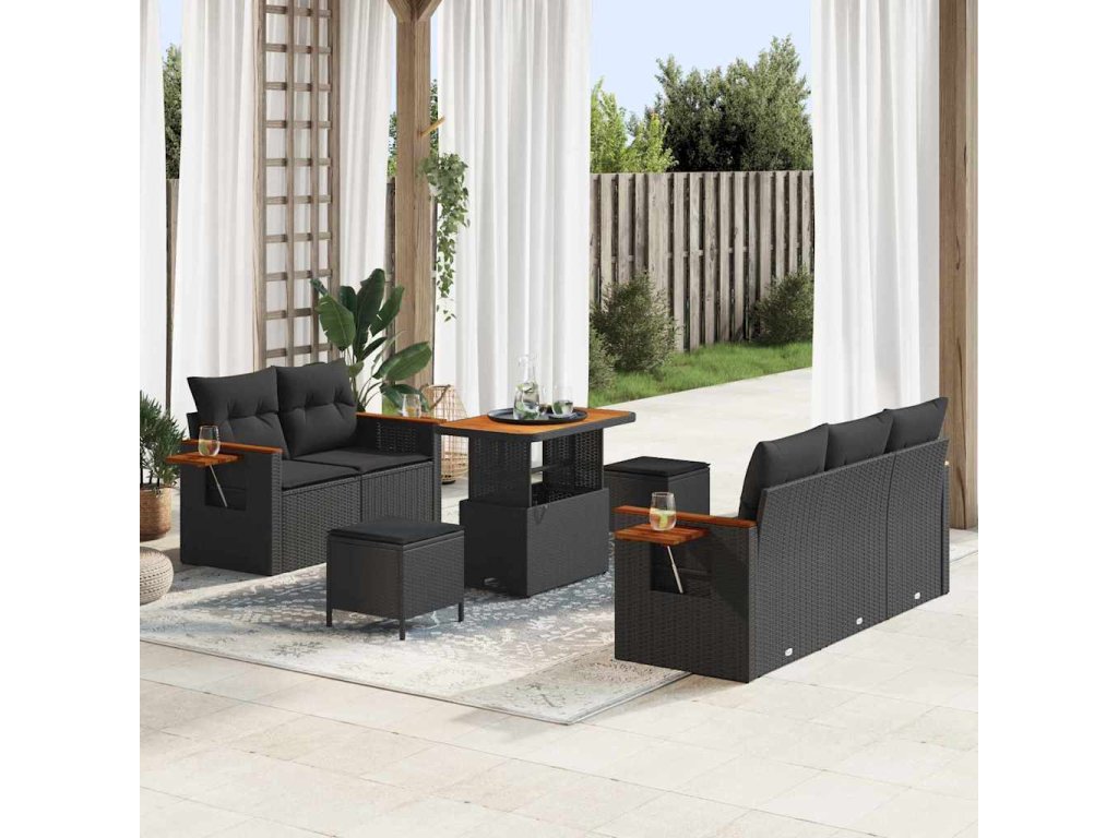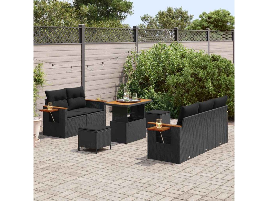 Sada zahradních pohovek s polštářem 8 pcs Černá 3363119