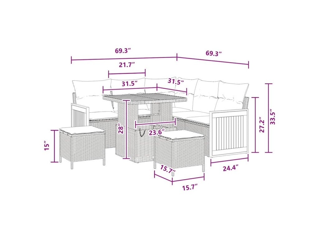 Tahle rohová sada gauče do zahrady je parádní doplněk pro každý venkovní prostor. Navržená tak, aby oživila tvou zahradu nebo terasu elegantním a praktickým stylem. S čistými liniemi a minimalistickým vzhledem, perfektně zapadne do různých dekorací. Tato sada gaučů tě zve k relaxaci během teplých měsíců, ideální pro venkovní setkání a odpočinek. Je vyrobená z UV-odolných materiálů, aby zvládla proměnlivé počasí, a dodává tvému venkovnímu prostoru nádech luxusu.