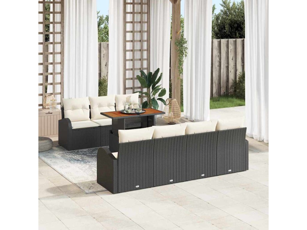 Sada zahradních pohovek s polštářem 8 pcs Černá a krémová 3349543