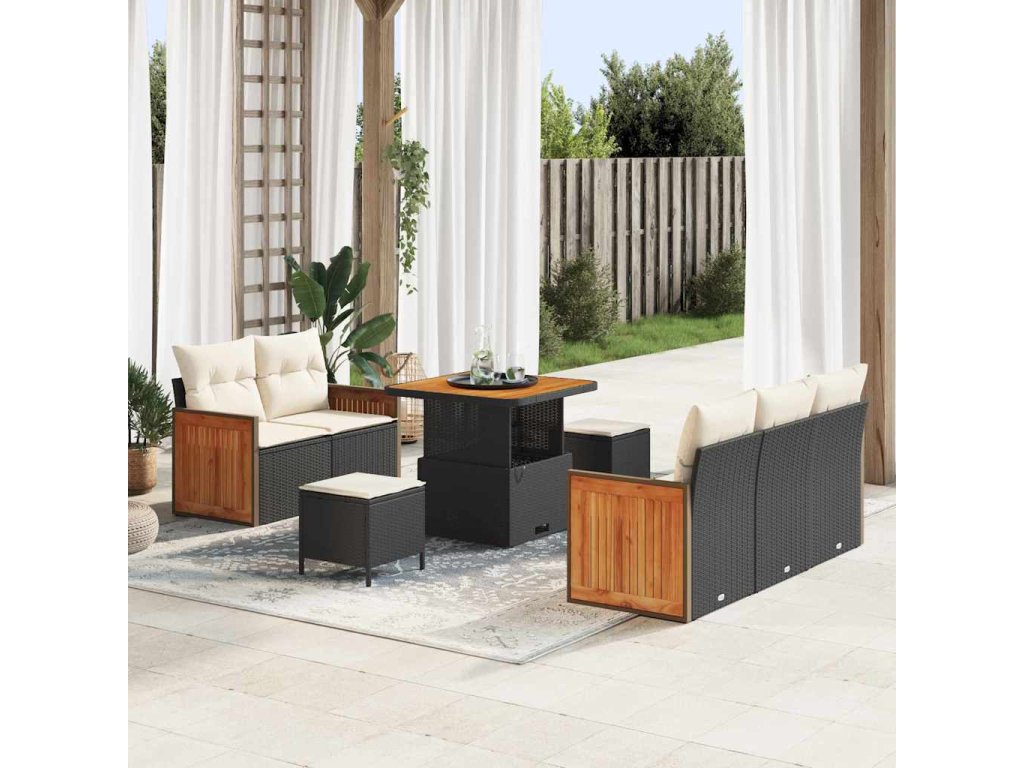 Sada zahradních pohovek s polštářem 8 pcs Černá a krémová 3363245