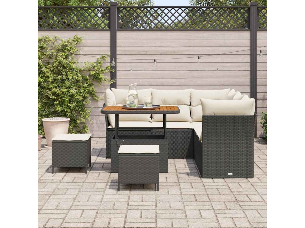 - Odolné materiály: Tento pohovkový set je vyroben z kvalitního poly ratanu a masivního akáciového dřeva, což zaručuje odolnost vůči venkovním podmínkám a skvělý vzhled. Materiály odolné UV záření a dennímu opotřebení, takže si tento kousek uchová svůj šarm po dlouhou dobu.