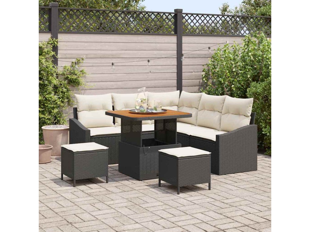 Sada zahradních pohovek s polštářem 8 pcs Černá a krémová 3364600
