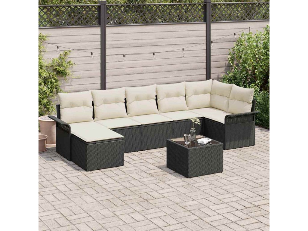 Sada zahradních pohovek s polštářem 8 pcs Černá Poly ratan 3345457