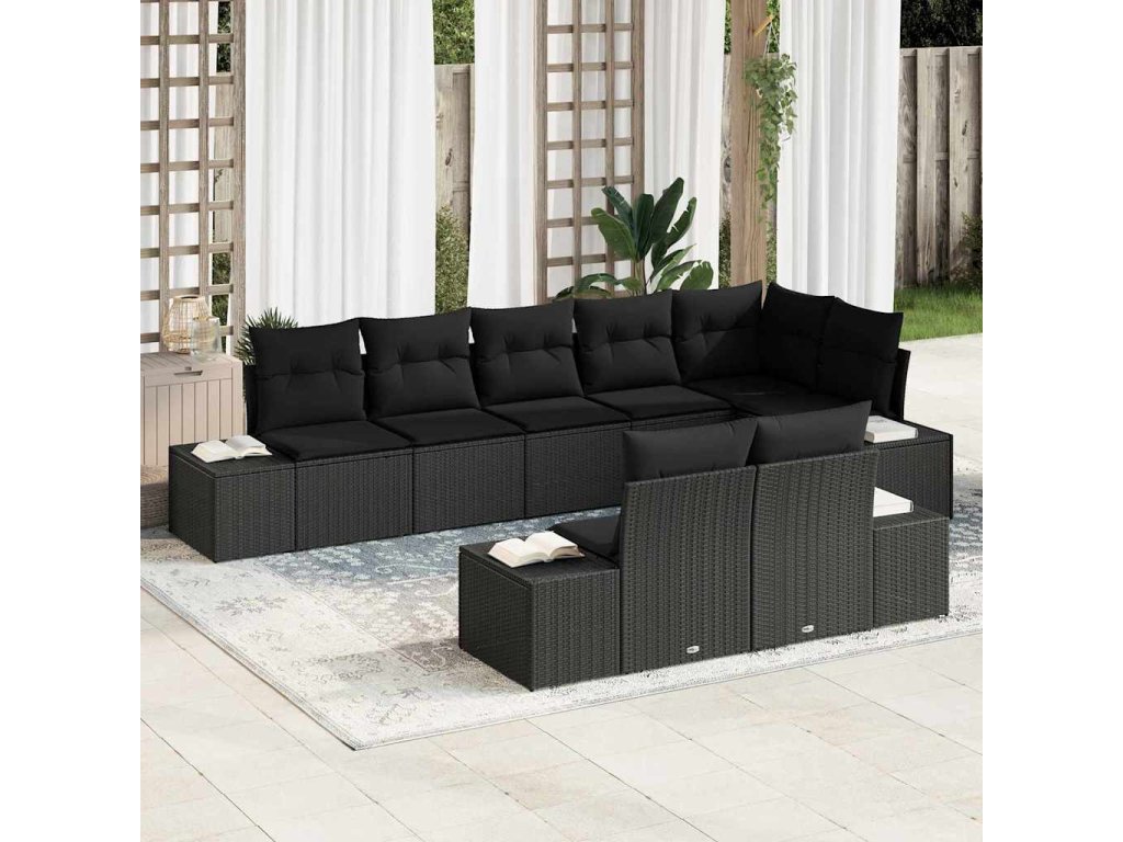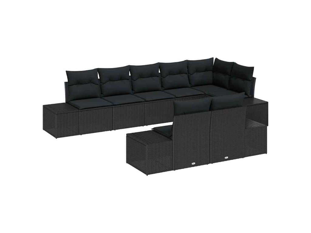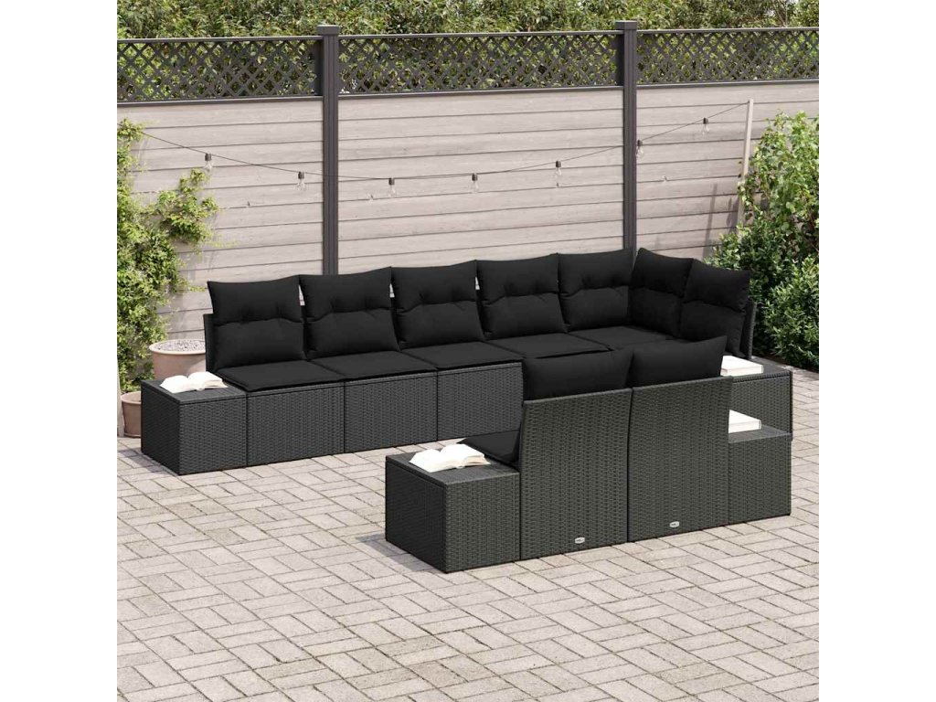 Sada zahradních pohovek s polštářem 8 pcs Černá Poly ratan 3347113
