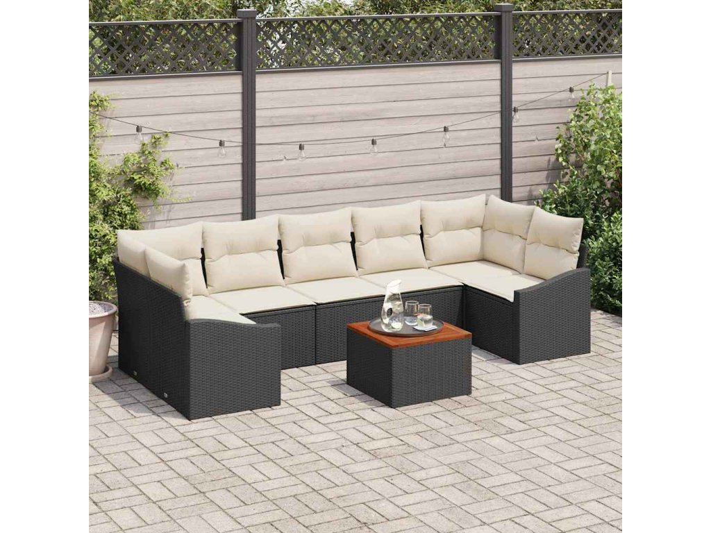 Sada zahradních pohovek s polštářem 8 pcs Černá Poly ratan 3347796