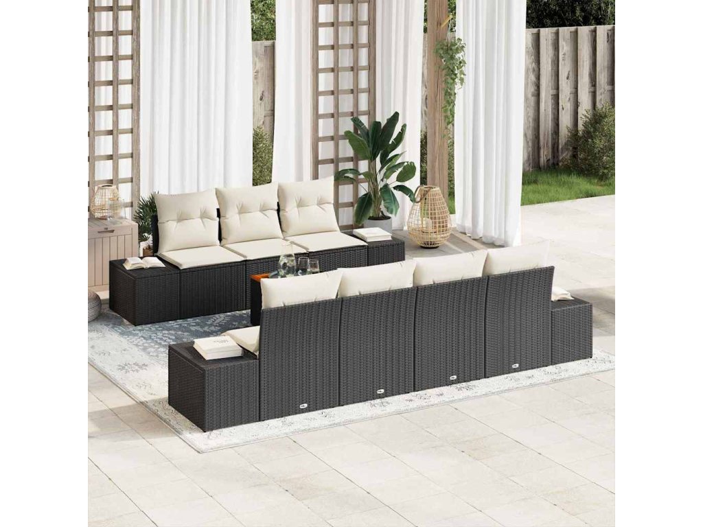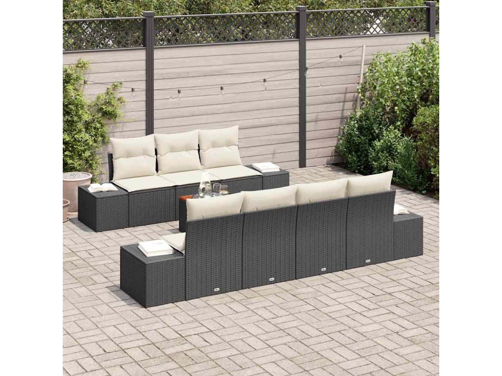 Sada zahradních pohovek s polštářem 8 pcs Černá Poly ratan 3347915
