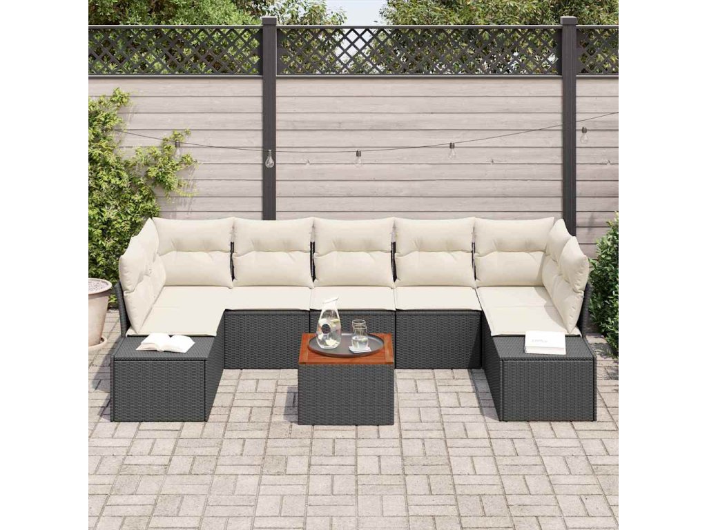 Sada zahradních pohovek s polštářem 8 pcs Černá Poly ratan 3347922