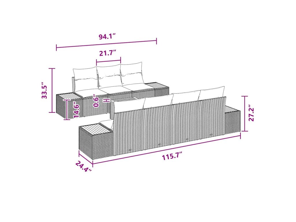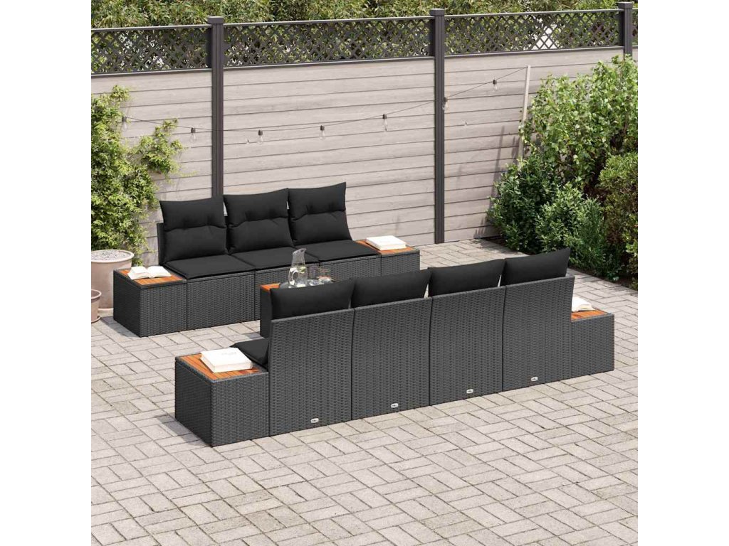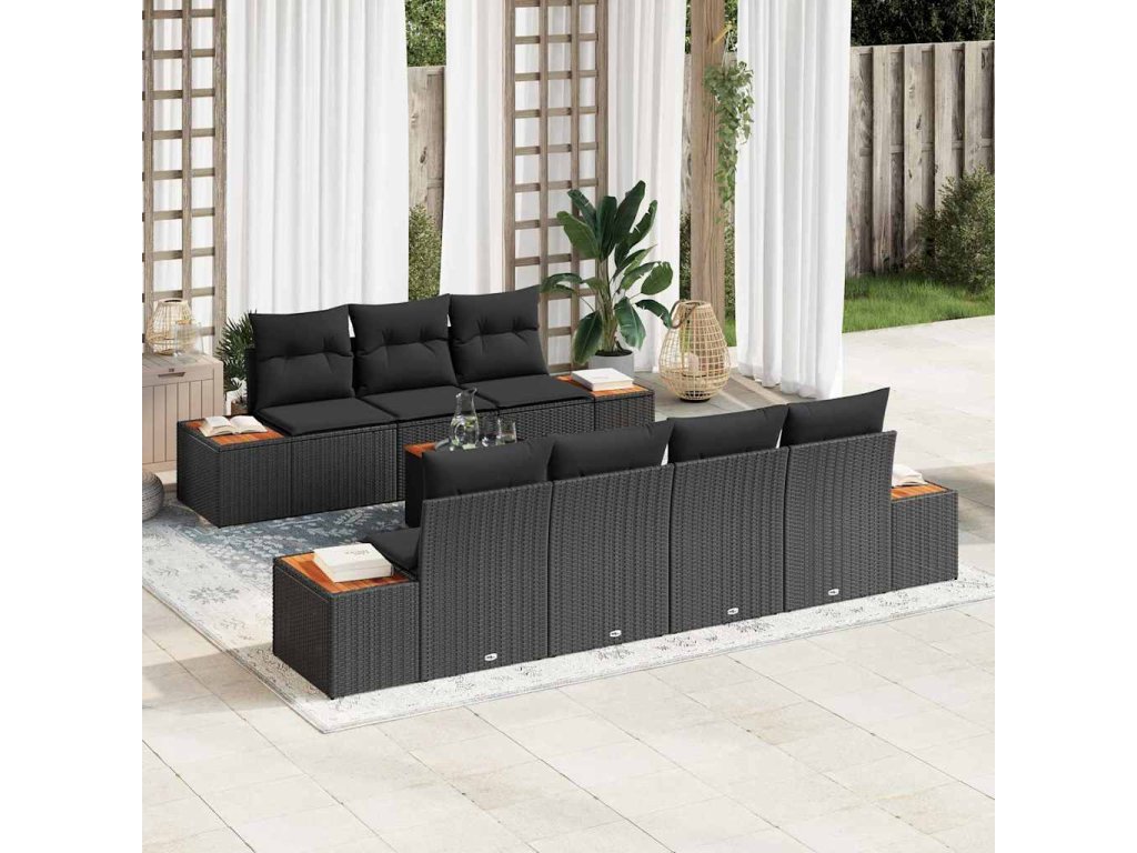 Sada zahradních pohovek s polštářem 8 pcs Černá Poly ratan 3348039