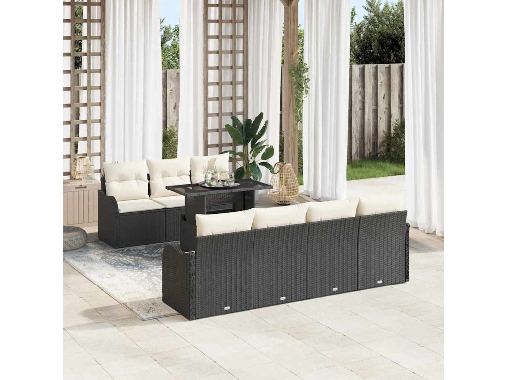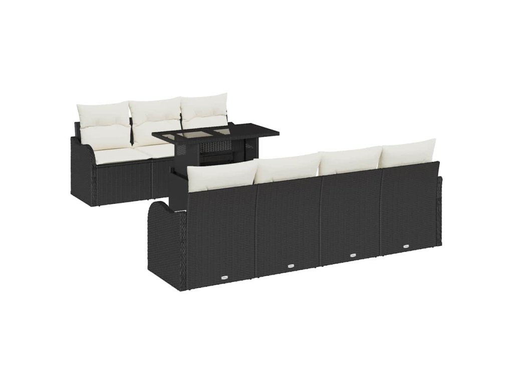 Sada zahradních pohovek s polštářem 8 pcs Černá Poly ratan 3348403