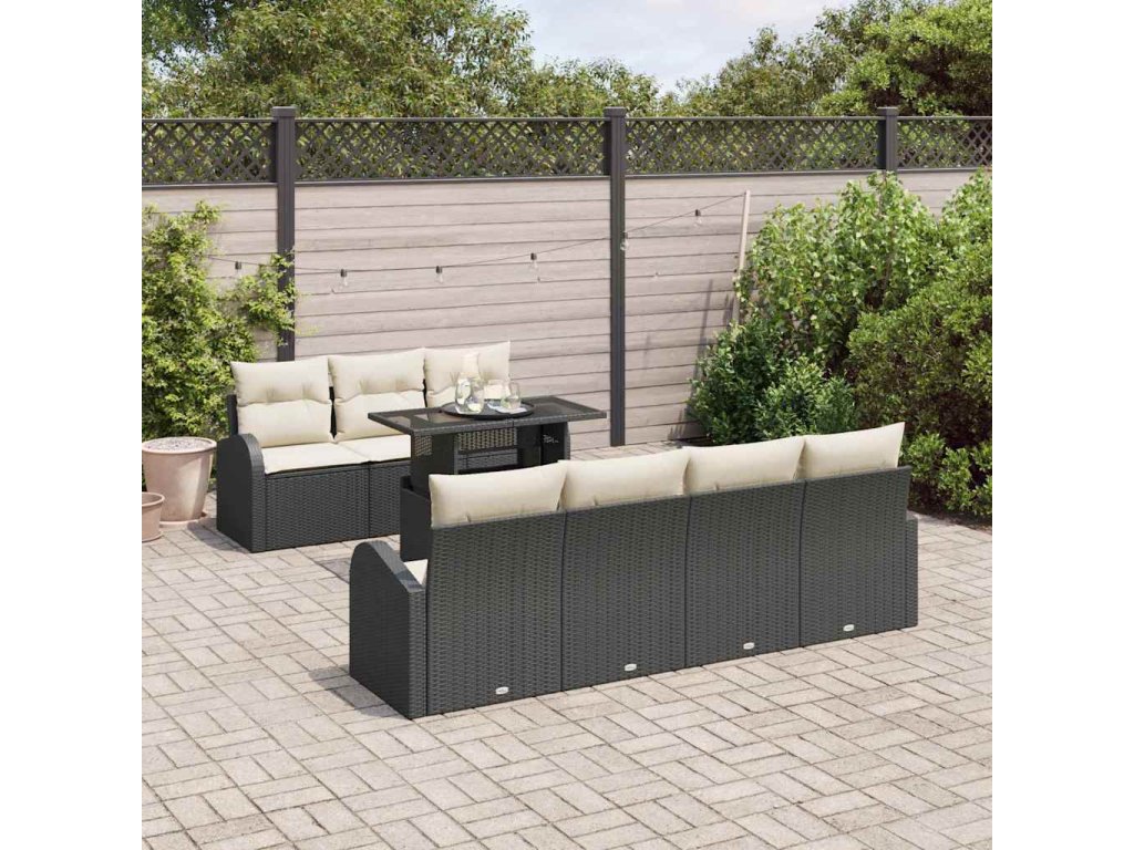 Sada zahradních pohovek s polštářem 8 pcs Černá Poly ratan 3348583