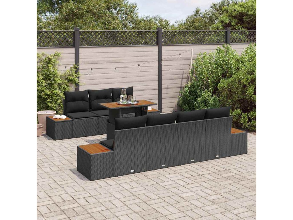 Sada zahradních pohovek s polštářem 8 pcs Černá Poly ratan 3350040