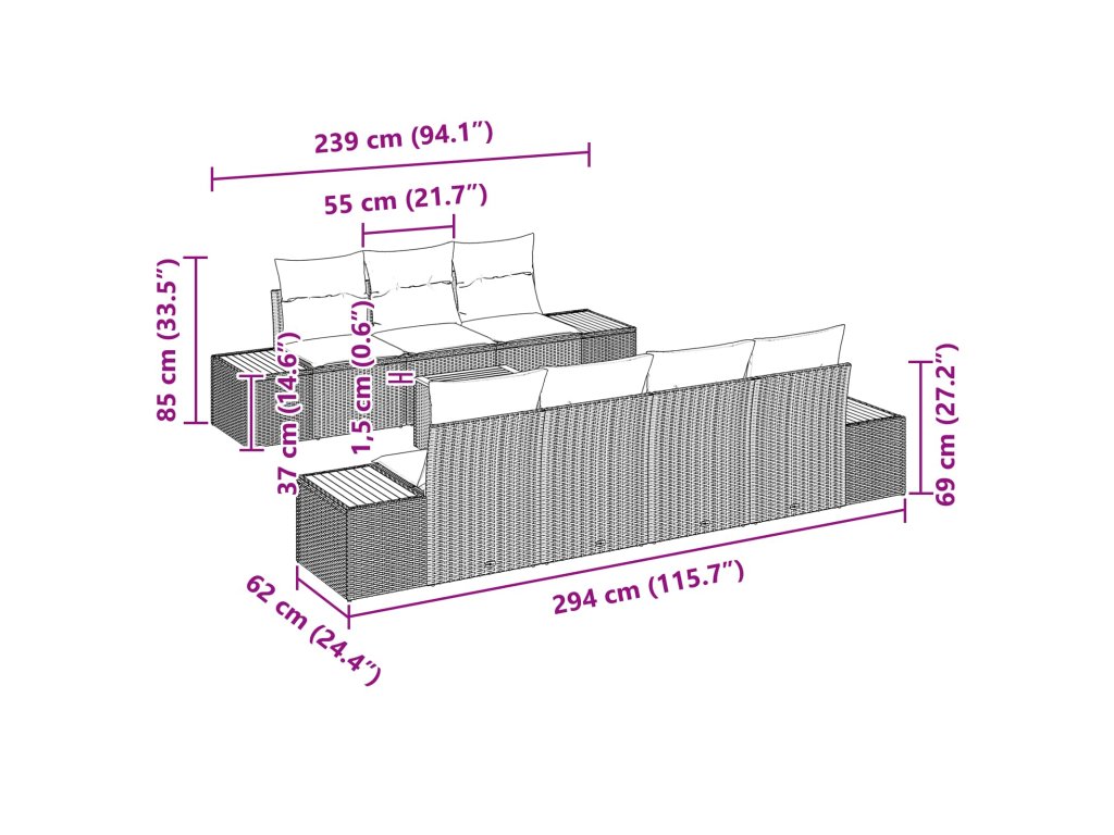 - Perfektní použití: Ideální na setkání nebo jen tak na lenošení, tahle souprava přidává styl do každé zahrady, terasy nebo dvora. Její stylový vzhled a flexibilita ji dělají perfektní na společenské akce i klidné chvíle osamotě, poskytující dostatek sedacího místa pro rodinu a přátele, a můžeš ji uspořádat podle svého stylu.
