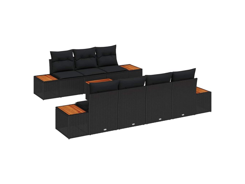Sada zahradních pohovek s polštářem 8 pcs Černá Poly ratan 3356708