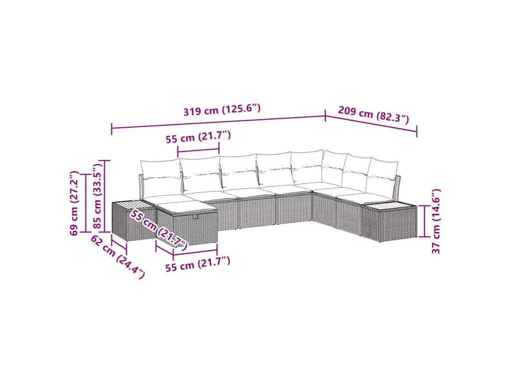 Sada zahradních pohovek s polštářem 8 pcs Černá Poly ratan 3359654