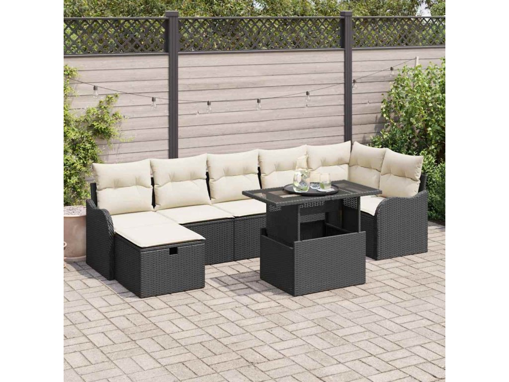 Sada zahradních pohovek s polštářem 8 pcs Černá Poly ratan 3359724