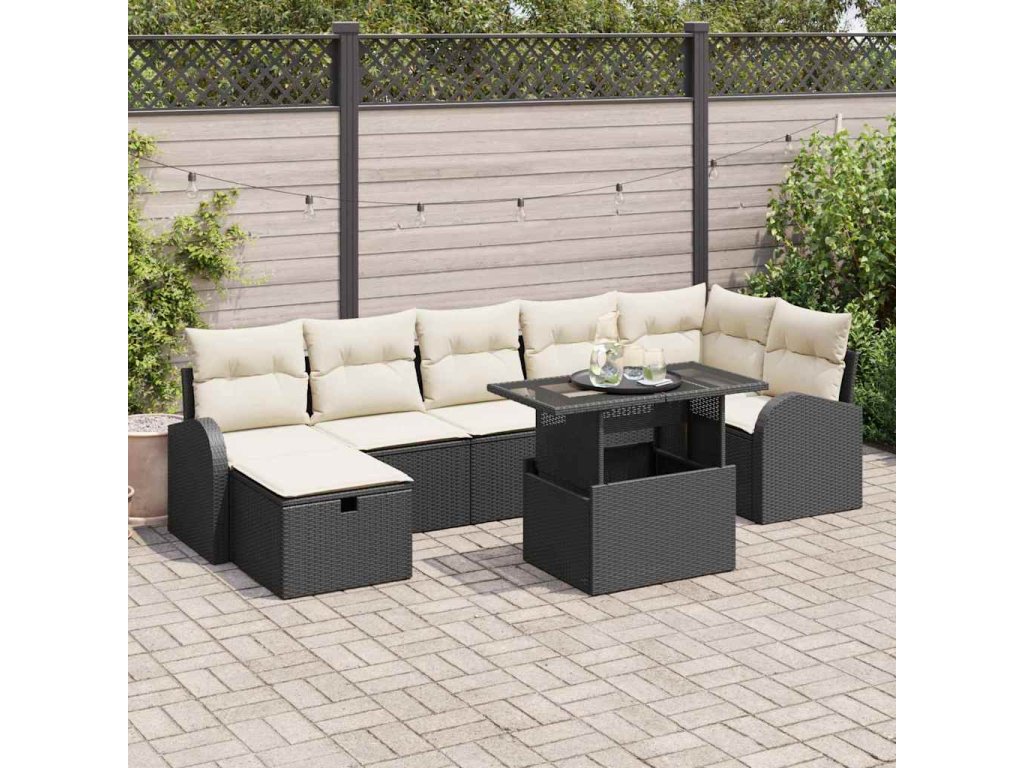 Sada zahradních pohovek s polštářem 8 pcs Černá Poly ratan 3359764