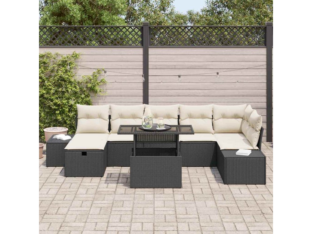 Sada zahradních pohovek s polštářem 8 pcs Černá Poly ratan 3359884