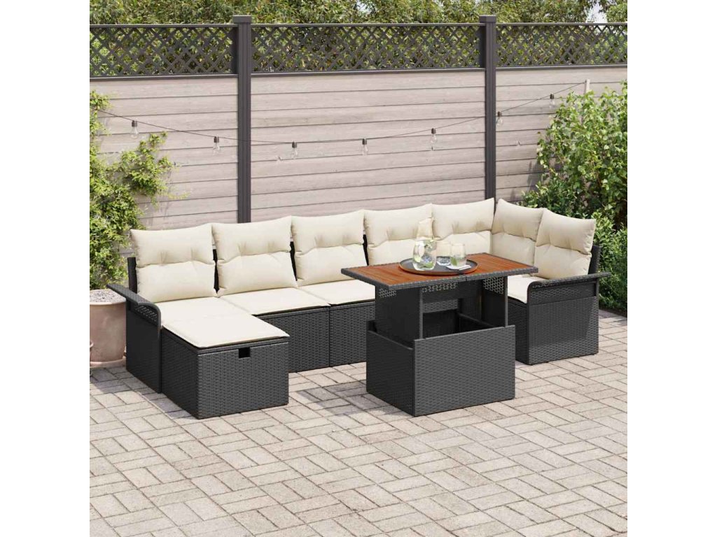 Sada zahradních pohovek s polštářem 8 pcs Černá Poly ratan 3359918
