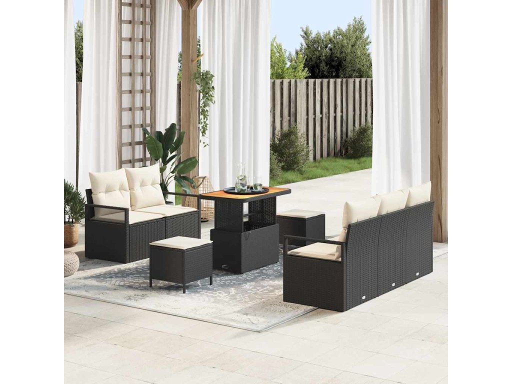 Sada zahradních pohovek s polštářem 8 pcs Černá Poly ratan 3362470