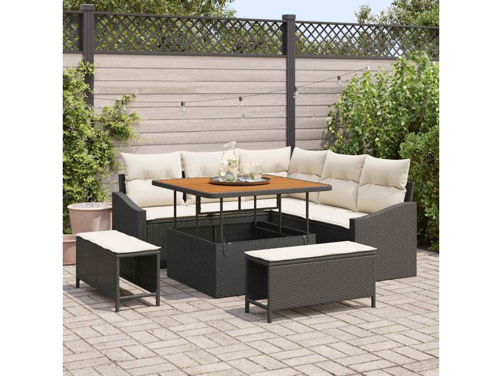 Sada zahradních pohovek s polštářem 8 pcs Černá Poly ratan 3362645