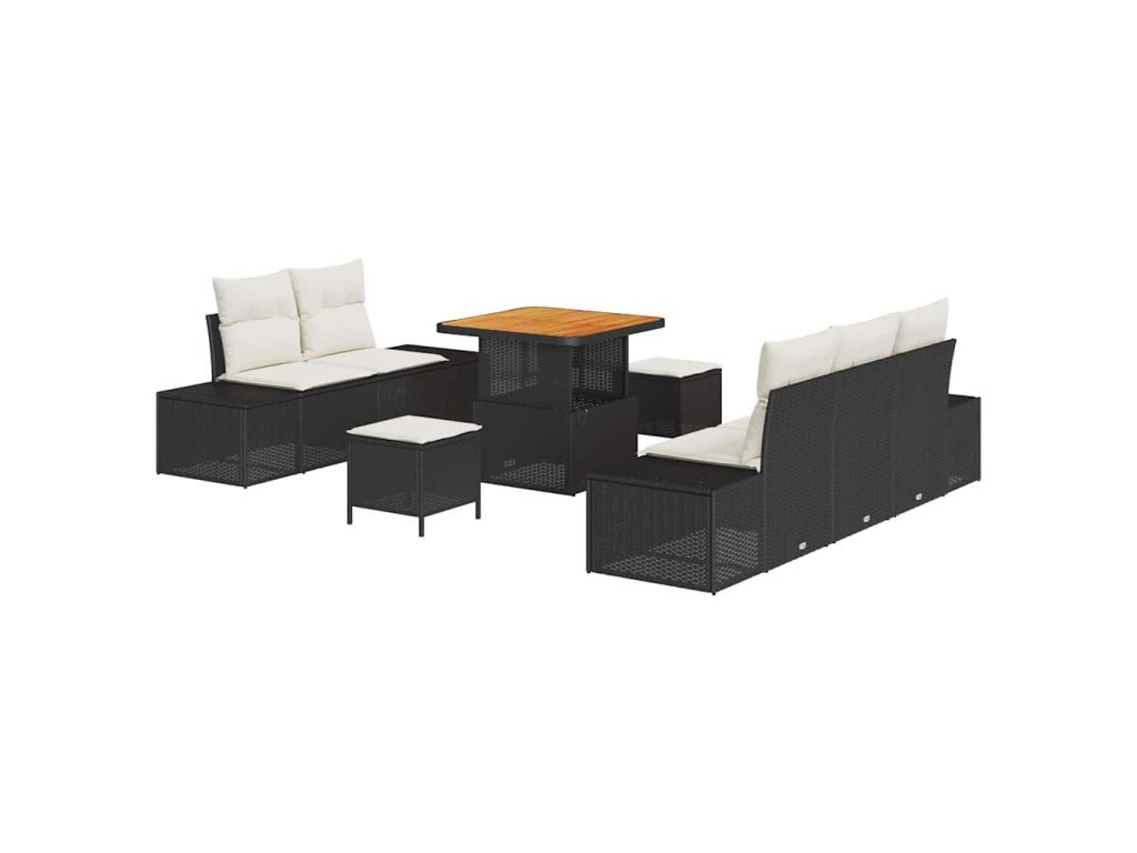 Sada zahradních pohovek s polštářem 8 pcs Černá Poly ratan 3362725