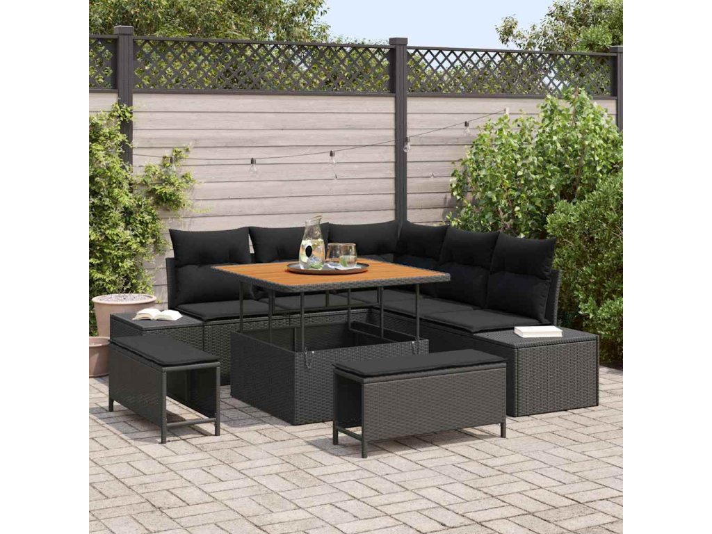 Sada zahradních pohovek s polštářem 8 pcs Černá Poly ratan 3362774