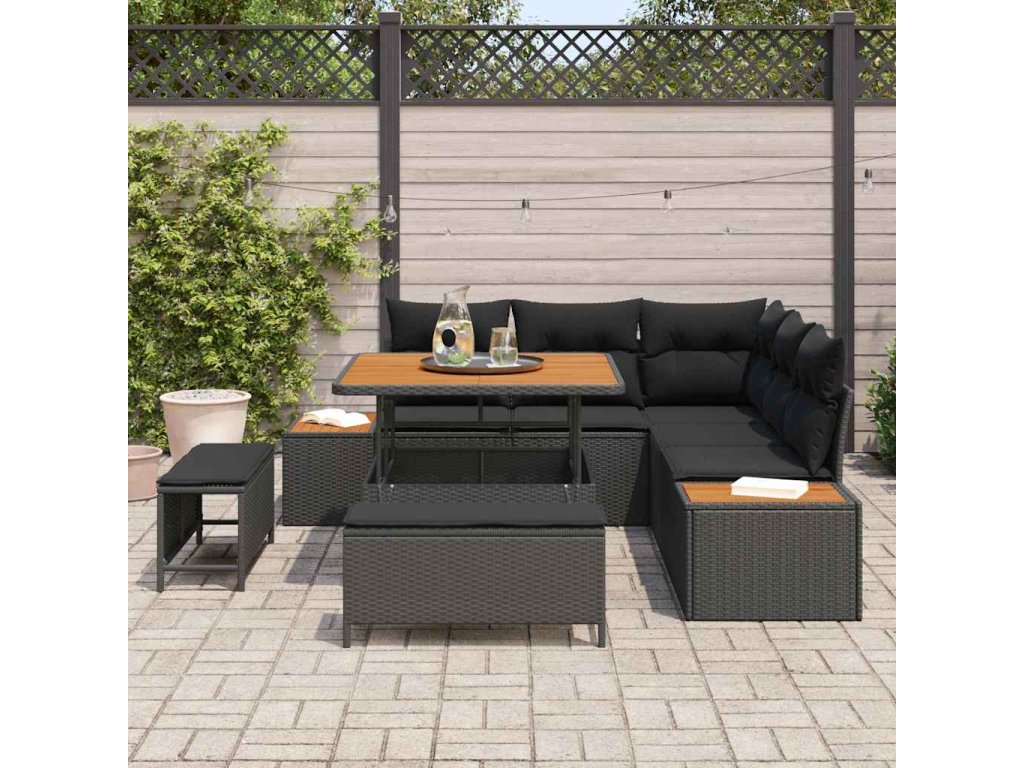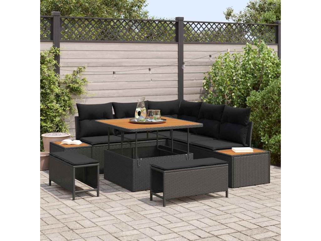 Sada zahradních pohovek s polštářem 8 pcs Černá Poly ratan 3362904
