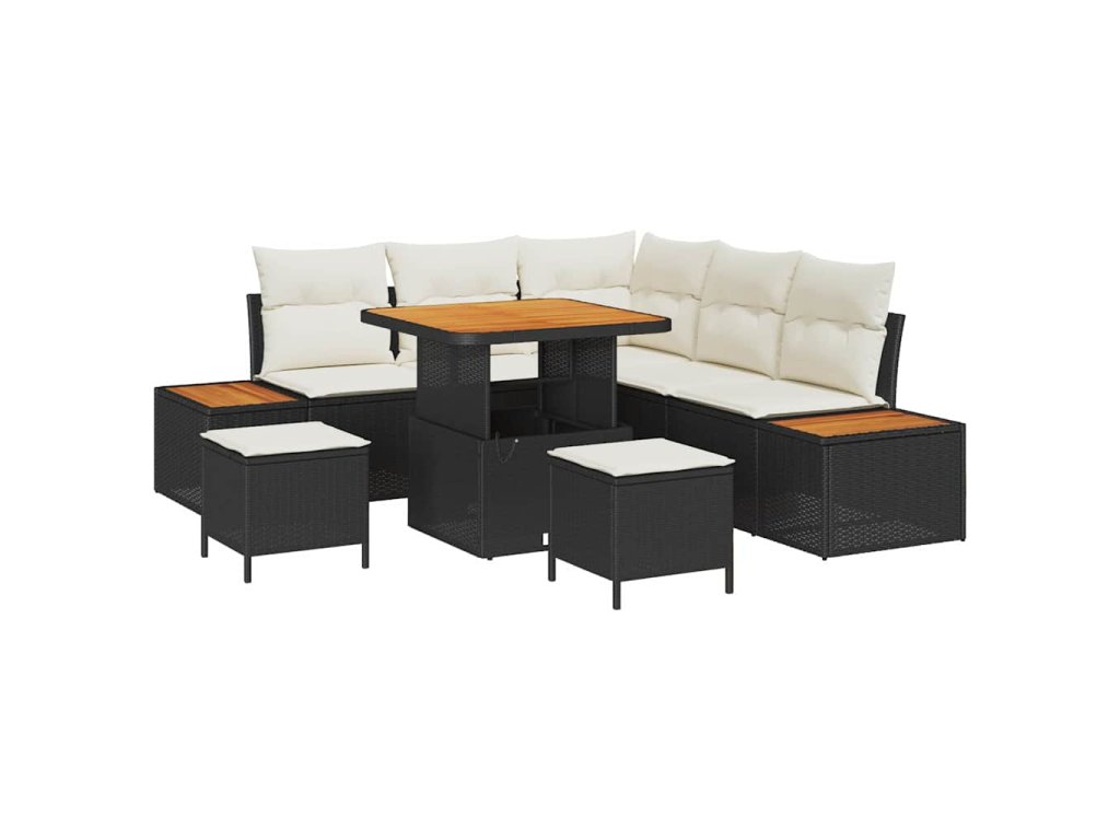 Sada zahradních pohovek s polštářem 8 pcs Černá Poly ratan 3362910