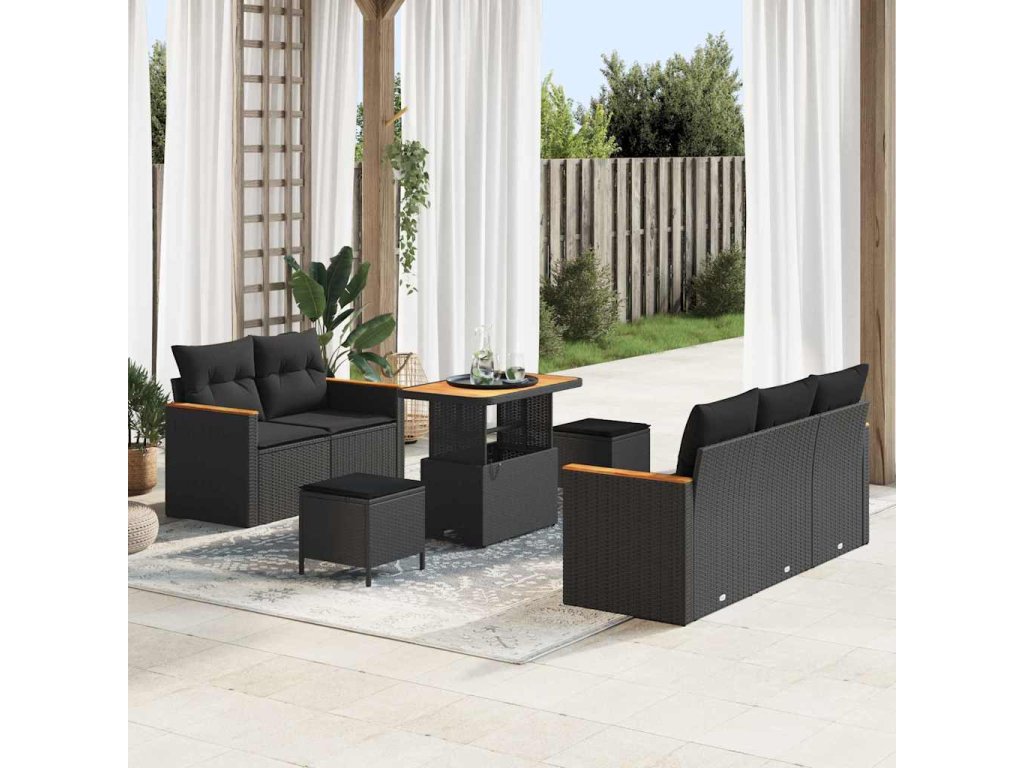 Sada zahradních pohovek s polštářem 8 pcs Černá Poly ratan 3362989