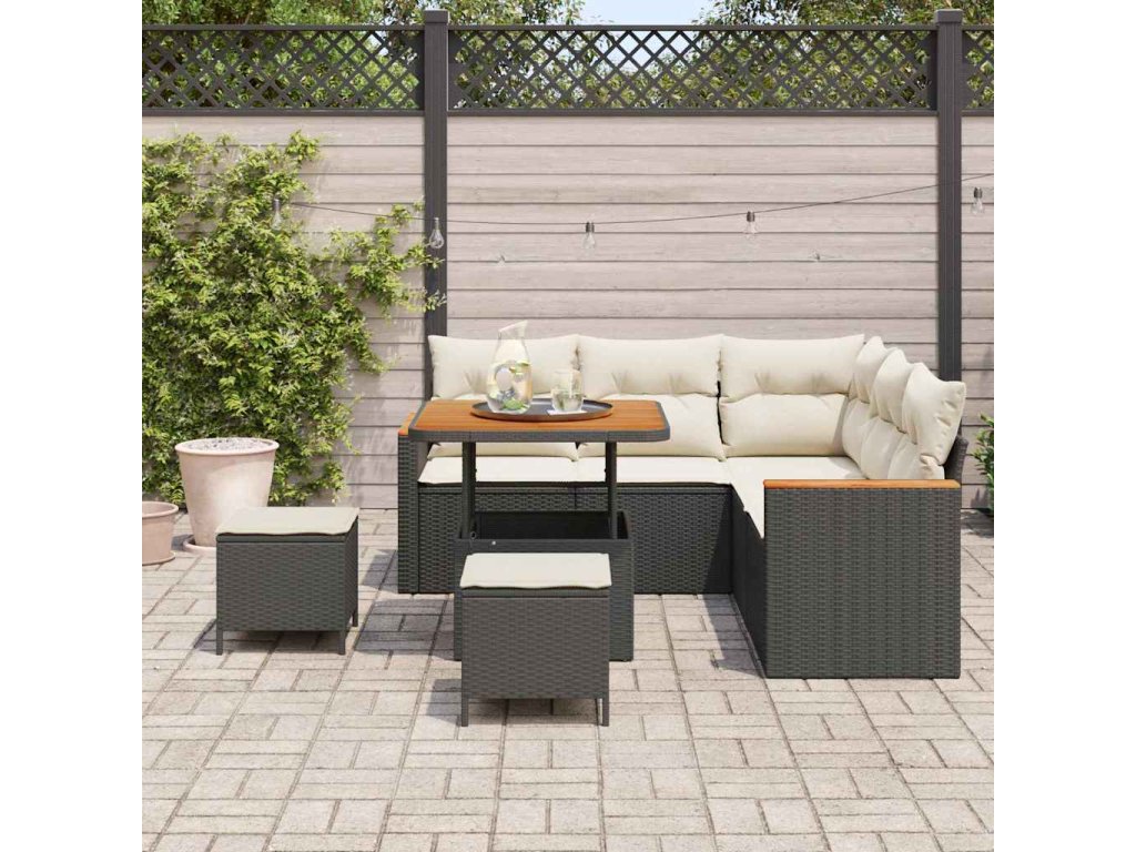 Sada zahradních pohovek s polštářem 8 pcs Černá Poly ratan 3364990