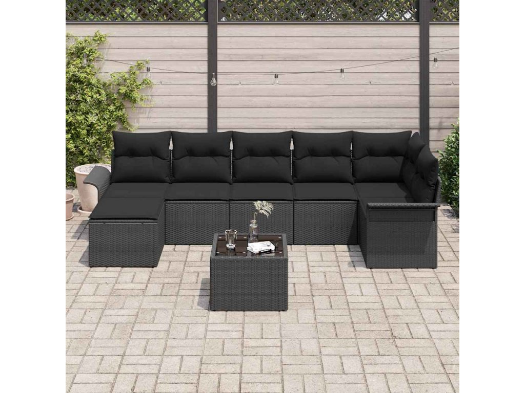 Sada zahradních pohovek s polštářem 8 pcs Černá polyratan 3345463