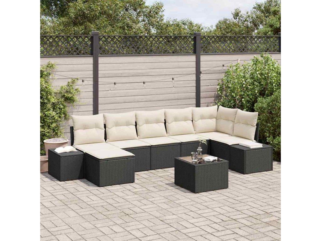 Sada zahradních pohovek s polštářem 8 pcs Černá polyratan 3347157