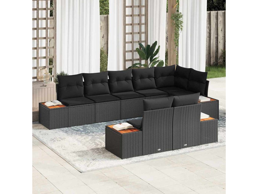 Sada zahradních pohovek s polštářem 8 pcs Černá polyratan 3348109