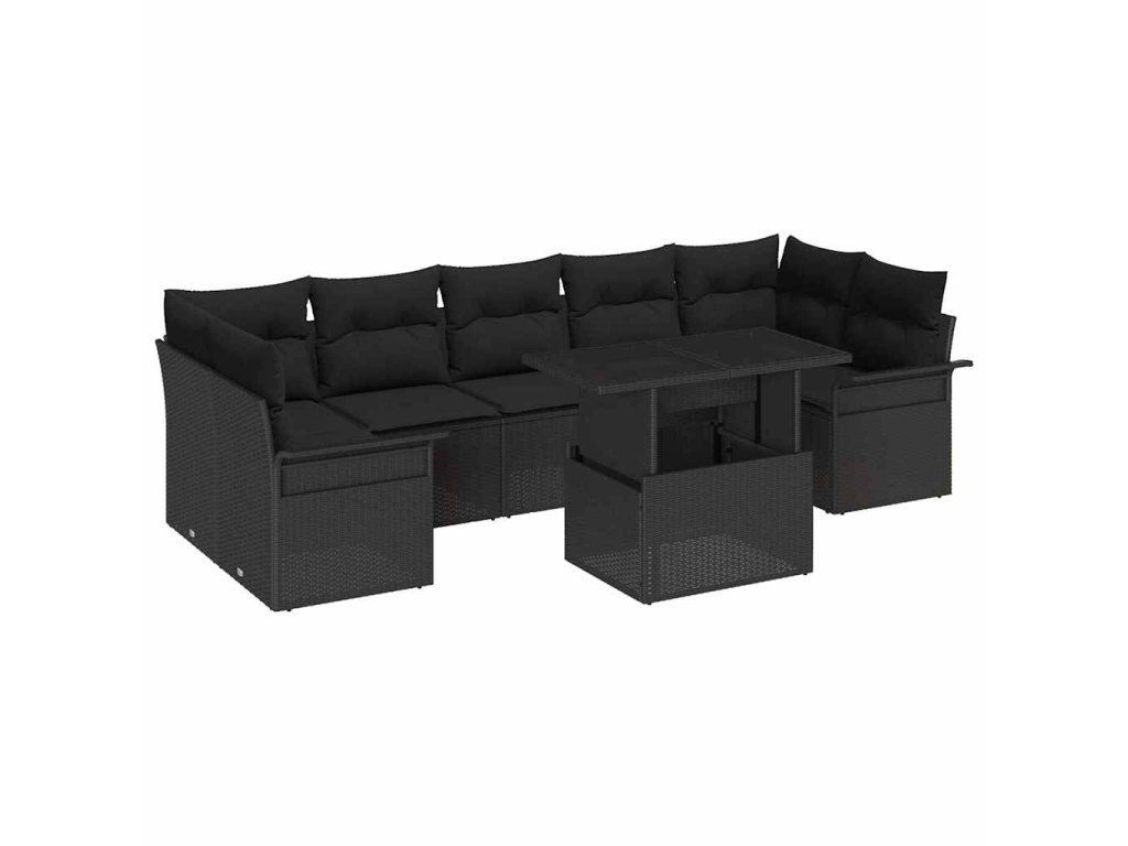 Sada zahradních pohovek s polštářem 8 pcs Černá polyratan 3348239